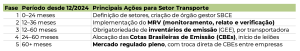 On December 11, 2024 , Law No. 15,042/2024 (PL 182/2024) was enacted , establishing the Brazilian Emissions Trading System (SBCE) . The 5-phase schedule, expected to come into effect by the end of 2028 , is as follows.